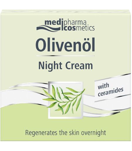 - Medipharma Olivenol Night Crema idratante viso 50ml è un idratante viso che grazie alla particolare formulazione con olio extra vergine d'oliva e ceramidi si prende cura della pelle durante la fase di rigenerativa notturna. Protegge … ...