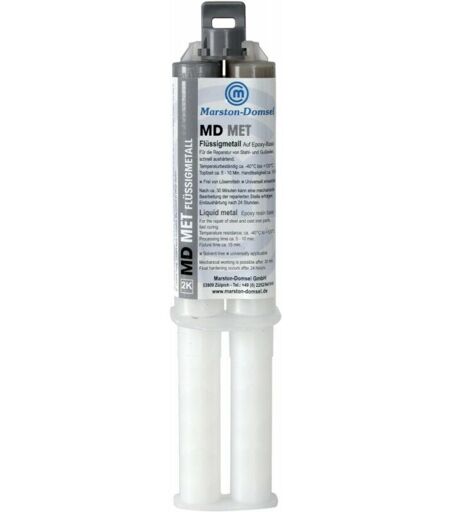 MD-2K Liquid Metal Riempie crepe e buchi Privo di solventi Universalmente distribuibile Per la riparazione sul posto Riparazioni false foratura, crepe e fili rotti su metallo, legno e plastica Facile da usare Ha una resistenza ad alta resistenza e temperatura fino a 120 ° C Le superfici adesive devono essere pulite, prive di olio e grasso (ad es. con Marston Cleaner) Ottimi risultati sono ottenuti da una sgrossatura meccanica della superficie adesiva Spegnere il tappo, Pit up ugello di miscelazione e abbassare Materiale espresso e scartare i primi 2 g, in quanto questi non sono ancora 1:1 misti Il tempo di legatura si accorcia ad alte temperature Mettendo insieme e fissando i pezzi Conservare la cartuccia locomposite fresca e asciutta ...
