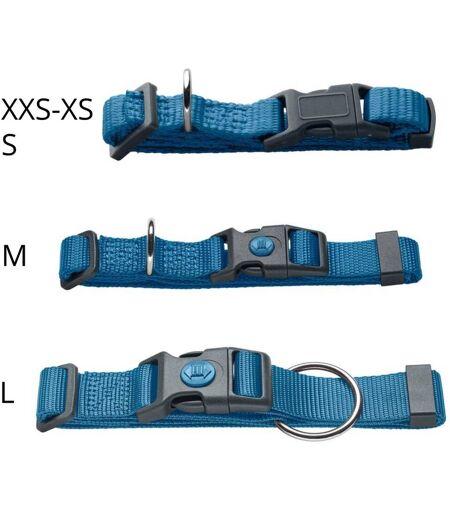 Hunter Collare per Cani London VB Azzurro in nylon. Presenta una pratica chiusura a scatto di sicurezza in plastica che può anche essere "bloccata" con un semplice movimento e riaperta altrettanto facilmente (solo nelle taglie M e L), per una maggiore sicurezza in tutte le avventure con il vostro preferito a quattro zampe. Facile da pulire e asciugabile rapidamente. Disponibile in varie taglie: Taglia Regolazione LarghezzaXXS-XS17-24 cm1 cmS24-36 cm1 cmM30-46 cm1.5 cmL34-56 cm2 cm ...