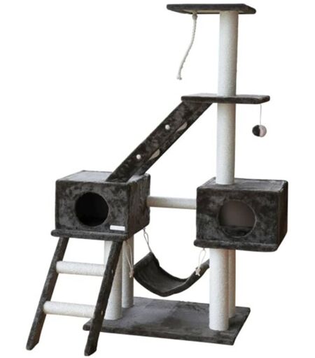 Con questo straordinario palo tiragraffi per gatti Granat da 150 cm della Kerbl, i vostri gatti possono graffiare, appollaiarsi, nascondersi, arrampicarsi e rilassarsi a loro piacimento. È adatto anche a qualsiasi arredamento. Tiragraffi per gatti ricco di funzioni: Il palo tiragraffi per gatti è dotato di comode casette, un'amaca rotonda, un lettino superiore e alcune piattaforme da riposo per offrire al vostro gatto la possibilità di dormire, stiracchiarsi e fare esercizio. Pratici pali tiragraffi: I tiragraffi con la corda in sisal incollata sui pali è perfetto per permettere al vostro gatto di farsi le unghie e per proteggere il vostro divano da eventuali danni. Graziosi giocattoli appesi: I vostri amici pelosi possono giocare con il gioco appeso e la corda da gioco inclusi. La base è realizzata in legno ed è molto robusta e stabile. Inoltre, l'albero tiragraffi per gatti è perfetto per più gatti. Colore: Grigio scuro Materiale: Legno Altezza totale: 150 cm Dimensioni base: 70 x ...