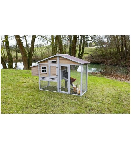 Realizzato in abete cinese di alta qualità, con finestra scorrevole per una circolazione dell'aria variabile, telaio metallico a terra protegge dall'umidità e dal deterioramento del legno, maggiore sicurezza grazie a una serratura aggiuntiva per porta, l'accesso tra il recinto esterno e l'area di riposo può essere bloccato. Smaltato con colore legno protettivo con tetto in bitume resistente alle intemperie. Facilità di montaggio, incl. istruzioni di montaggio ...