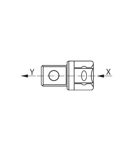 Descrizione Esecuzione: Quadri interni / esterni secondo DIN 3120. Forgiati, quadri maschi con sfera oppure spina elastica di tenuta, quadri femmina con foro o nervatura di presa. Bussola di maggiorazione. Norma: DIN 3123-A Materiale: Acciaio al cromo; esecuzione cromata e nichelata. Dati tecnici Tipo di prodotto Bussola di maggiorazione. Quadro maschio [y], pollici 1 Quadro femmina [x], pollici 3/4 Numero pezzi 1 ...