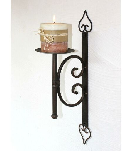 Portacandele da parete - applique. Bellissima decorazione da parete. Completamente primerizzato con vernice antiruggine e dipinto con colori laccati di alta qualità. Dimensioni: altezza circa 41 cm, P circa 16 cm, diametro circa 11 cm. Colore: Nero bronzo antico. ...