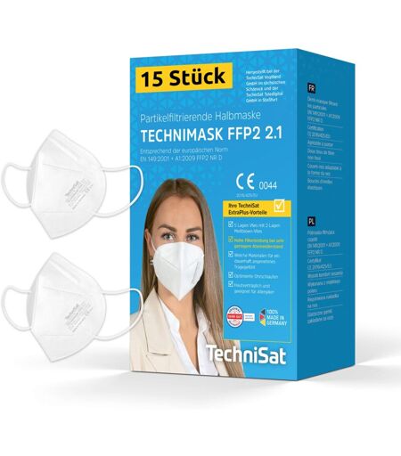 Technisat Technimask 2.1 – 15 mascherine FFP2 prodotte in Germania (certificate ce, dolomiti, a 5 strati con tessuto non tessuto di alta qualità,