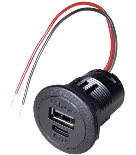 ProCar Power usb-c/a presa doppia pd/qc senza led Portata massima corrente=2.2 a 12 - 24 v/dc -