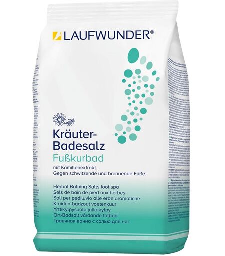 LAUFWUNDER - SALI DA BAGNO - Descrizione Sali da bagno alle erbe per pediluvio per piedi e gambe stanche e pesanti. Proprietà: rinfresca, tonifica e dona sollievo a gambe appesantite e piedi stanchi ed affaticati; ammorbidisce le callosità e svolge un'azione deodorante. Principi attivi: estratto di… ...