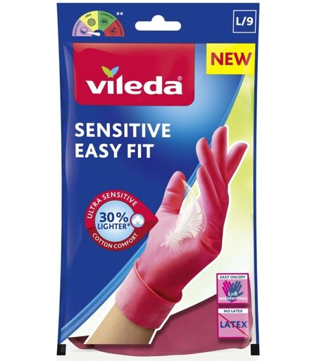 I Guanti Vileda Sensitive Easy Fit sono un prodotto unico, che combina le caratteristiche di sensibilità e praticità tipiche dei guanti usa&getta, al comfort e alla resistenza dei guanti casalinghi. Grazie alla composizione in nitrile non contengono lattice né polveri e possono, pertanto, essere utilizzati persino da coloro che soffrono di irritazioni e allergie causate dal lattice. Pur essendo molto sottili, i guanti Vileda Sensitive Easy Fit sono molto resistenti e garantiscono una elevata protezione, lasciando le mani sempre asciutte anche dopo averli indossati a lungo. Infine, il rivestimento interno in cotone li rende estremamente confortevoli per ogni tipo di lavoro domestico, anche quelli più delicati come il lavaggio dei piatti, o per praticare il proprio hobby preferito come la pittura, il découpage, i piccoli lavoretti di giardinaggio o per attività fai da te. Le mani restano sempre asciutte e protette dall`acqua calda o dalla polvere. La perfetta vestibilità è enfatizzata dal fatto di essere ambidestri, perciò potrai indossarli, indistintamente su entrambe le mani, in modo pratico e veloce. ...