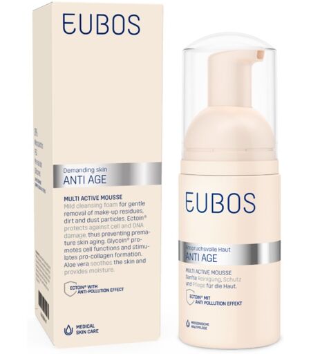 EUBOS - MULTI ACTIVE MOUSSE - Descrizione Mousse detergente idratante che libera delicatamente ma accuratamente la pelle dalle impurità che provocano un invecchiamento cutaneo precoce. Deterge dai residui di make up sporco e particelle di polvere nonché il sebo in eccesso. Adatta a tutti i tipi d… ...