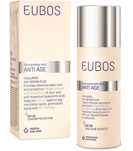 EUBOS HYALURON DAY - Descrizione La crema giorno con acido ialuronico Eubos Hyaluron Day Repair Plus protegge la pelle dal fotoinvecchiamento grazie a un efficace filtro UV SPF20. Una crema idratante e anti età contenente Vitamina C ad azione antiossidante e protettiva. Modalità d'uso Utilizza la … ...
