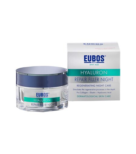 EUBOS HYALURON REPAIR FILLER NIGHT - Descrizione Eubos Hyaluron Repair Filler Night è la speciale crema notte anti - rughe multi - attiva con DermCom estratto speciale dal croco che promuove la comunicazione cellulare e stimola la sintesi di collagene ed elastina. Uno speciale isosorbide - deriva… ...