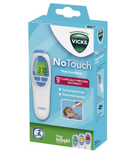 Vicks Termometro senza contatto - Descrizione Termometro senza contatto. - Fever InSight: il display visualizza i colori per aiutare a interpretare la temperatura: · verde: temperatura normale · giallo: febbre · rosso: febbre alta. - Funzione modalità silenziosa: questa opzione consente di effettua… ...