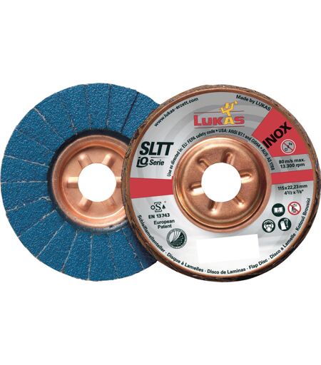 LUKAS - Disco abrasivo lamellare SLTT (ZA-Power), piatto-obliquo per acciaio e INOX ⌀ 115 mm