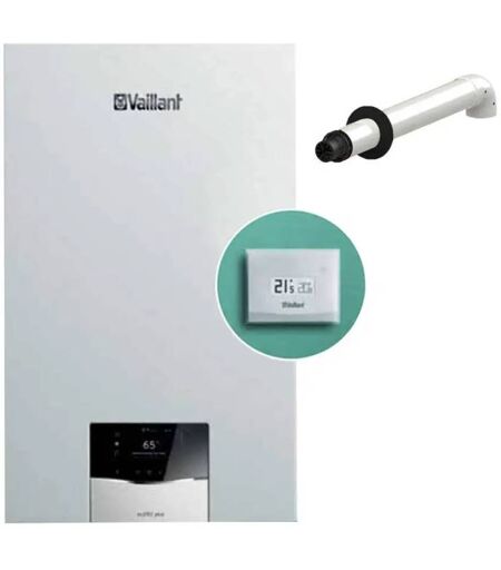 Vaillant ecoTEC plus VMW 35CS/1-5 cfl WIFI 35 kW Caldaia murale a condensazione combinata da interno per riscaldamento e acqua calda sanitaria 0010022025 Caldaia a Condensazione Vaillant ecoTEC PLUS VMW 35 CS/1-5 cfl WIFI 35 kW a Metano o Gpl Caldaia a condensazione Murale Vaillant ecoTEC Plus VMW 35 CS/1-5 cfI WiFi, a Metano, per Riscaldamento e acqua calda, da Interno, kW potenza 25, 12.6 l/m di acqua calda prodotta, istantanea, classe energetica R A, classe energetica ACS A, A condensazione, 34.8 cm lunghezza, 44 cm larghezza, 72 cm altezza - 0010022025 ecoTEC plus+ abbinata con vSMART WiFi unisce le performance della caldaia più amata alla comodità della smart connectivity. Grazie alla sua App gratuita infatti, vSMART rappresenta un nuovo approccio all'home efficiency, trasformando smartphone o tablet in sistemi di controllo a distanza e permettendo di controllare e regolare ecoTEC plus in qualsiasi momento, da qualunque luogo, in modo rapido e intuitivo. Inoltre ecoTEC plus + vSMART abbinati sono in grado di raggiungere l'efficienza energetica di sistema certificata A+. Caldaia murale a gas Metano o Gpl Classe A Codice ecoTEC plus VMW CS/1-5 cfl WIFI 35 kW 0010022025 Acqua Calda Sanitaria e Riscaldamento Pompa Modulante Alta Efficienza Camera Stagna Tiraggio Forzato Dispositivo Antigelo Scambiatore in Acciaio e garanzia Fino a 7 Anni Tutti i modelli della gamma ecoTEC plus VMW 30 CS/1-5 cfl WIFI da 35 kW presentano un'efficienza etas = 94%. Per questo, se abbinati ad una termoregolazione di classe VI (come vSMART, il termostato modulante wi-fi), possono raggiungere un'efficienza di sistema pari a 98% e quindi la classe energetica ErP in riscaldamento A+. La calcaia fornisce accessori come il; rubinetto gas, rubinetto e riduttore di portata ingresso acqua fredda, staffa e viti di montaggio a muro e documentazione e dima di carta. Nuovo sistema di combustione IoniDetect, nuovo sistema ADA di auto-bilanciamneto pressione gas alimentazione. Modulazione 1:9, preriscaldo ACS AquaComfort. Vaso espansione 10 litri e con attacchi idraulici orizzontali. Convertibile in GPL: Nella versione VMW (combinata), nascono tutte con alimentazione a metano con la possibilità di essere convertite a gpl all'atto del collaudo da parte del tecnico installatore. Tecnologicamente le innovazioni riguardano: il nuovo blocco termoidraulico, la tecnologia Ioni Detect il sensore di temperatura dell'acqua sanitaria, tutto per garantire il migliore comfort sanitario di sempre; come la nuova funzione "soaping" che assicura la stessa temperatura dell'acqua per tre minuti anche se si chiude il rubinetto: docce calde, serene e senza inutili sprechi. Design rivisitato e nuove linee anche per nuova e intuitiva interfaccia touch-screen con messaggi parlati che aiutano il cliente ad ottenere il massimo comfort nel modo più semplice possibile. Le caldaie Vaillant ecoTEC PLUS VMW 256 5-5+ 25 Kw a condensazione ecoTEC plus VMW combinano la produzione di acqua calda sanitaria alla... ...