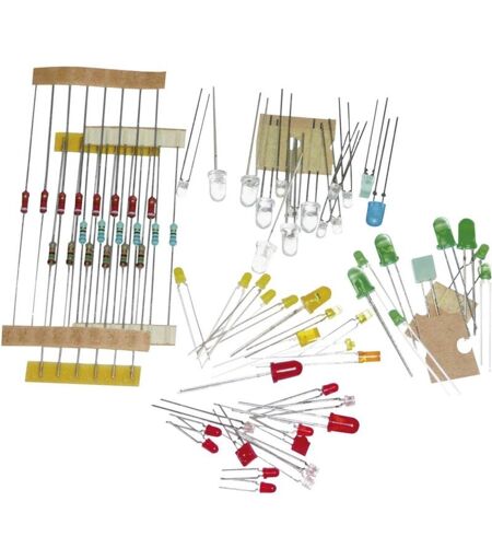 Dettagli tecnici Case (resistenze e condensatori) radiale Tipo S093 KIT led S093 L'assortimento di ca. 50 diversi diodi luminosi e 20 resistenze con valori differenti è completato con una brochure con 14 programmi di collegamento illustrati. Adatto particolarmente per il primo ingresso nel fantastico mondo della tecnologia LED o per istituti d'istruzione per l'addestramento o l'aggiornamento nel settore dell'optoelettronica. Punti di forza e dettagli Contenuto differenziato Diverse forme e colori contenuto: 50 diodi luminosi e 20 Resistenze Incluso nella consegna 50 diodi luminosi, 20 Resistenze, Brochure con 14 raffinati schemi elettrici Requisiti di sistema null Note I chip LED ordinari devono sempre essere limitati in corrente da resistenze in serie o da fonti a corrente costante. Illustration similar. ...