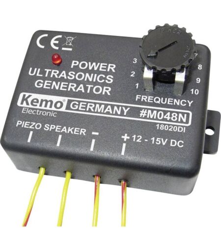 Dettagli tecnici Dimensione del prodotto, larghezza 45 mm Dimensione del prodotto, lunghezza 75 mm Dimensioni prodotto Altezza 28 mm Principio di funzionamento Multifrequenza Ulteriori dati tecnici Assorbimento di corrente 100 mA Portata 25 m Assorbimento di corrente: 100 mA Portata 25 m Generatore di ultrasuoni 12 - 15 V Potente generatore di ultrasuoni per allontanare ratti, topi, conigli selvatici, martore e uccelli. Viene emesso un ultrasuono forte con una frequenza automodificante in continuo. Le persone generalmente possono sentire solo le frequenze fino a 22 kHz. Un LED lampeggiante indica il funzionamento del modulo. Punti di forza e dettagli Uscita casse acustiche per un massimo di 5 casse acustiche piezoelettriche. Requisiti di sistema null ...