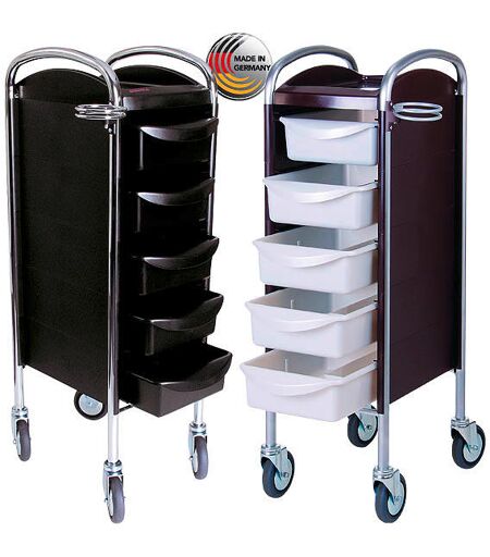 Telaio saldatoParti in plastica robuste e durevoli stampate a iniezioneRuote silenziose, scorrevoli e facili da pulireIncluso supporto per l'asciugacapelli5 bidoni di lavoroDimensioni H x L x P: 94,5 x 28 x 37 cm ...
