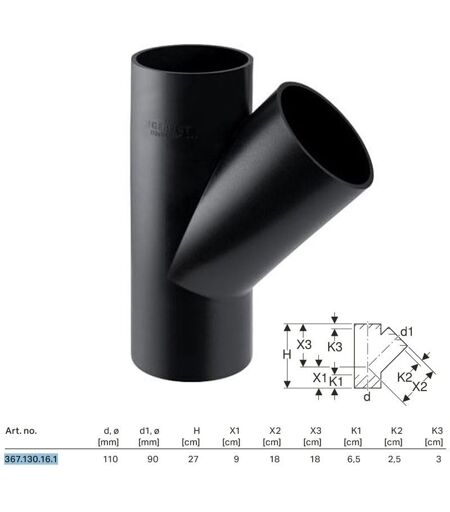 Geberit Braga 45° PE ø110x90 mm 367.130.16.1