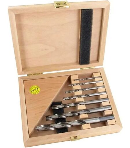 FAMAG Set di punte elicoidali, HSS, 7 pezzi, scatola di legno Ø 3,4,5,6,8,10,12 - 1591.507