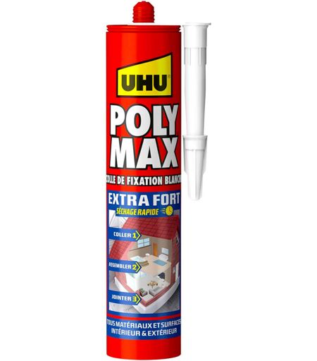 UHU Poly Max extra forte è una colla-mastice universale per montaggi e sigillature di qualità professionale a base della tecnologia unica MSP! Per incollare, assemblare e sigillare quasi tutti i materiali su quasi tutte le superfici (lisce, porose, non porose e leggermente umide). Si utilizza sia all’interno che all’esterno, è estremamente resistente ed è dotata di un’elasticità permanente. La sua formula permette di essere verniciata ed è resistente alla formazione di muffe. Campo di applicazione: Per incollare: vetro, pietra, cemento, gesso, numerosi plastici, legno, tutti i metalli, specchi. Per assemblare: battiscopa, listelli, davanzali, soglie, coperture di tetti, pannelli da costruzione, pannelli isolanti, modanature. Per sigillare: giunti di raccordo, telai di finestre (in plastica), coperture di tetti, coperture di coperture, grondaie, pareti, lucernari e camini, vetri con telaio e molto altro! Modo d’uso: I due componenti devono essere solidi, puliti ed esenti da ...