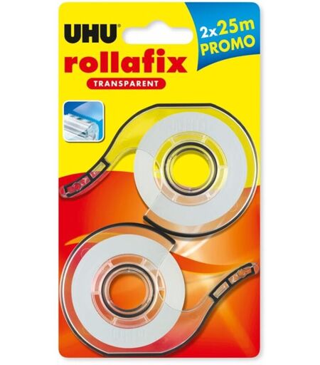 UHU Rollafix - Nastro adesivo trasparente, non ingiallisce, confezione da 2 dispenser con ricarica, 25 m x 19 mm -
