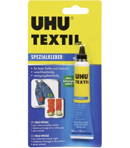Dettagli tecnici Adatto per Incolla in cotone, tessuto in jeans, lino, feltro e fibra di cocco e tessuto misto-cotone tra loro o con legno e pelle Indicazione di sicurezza EUH EUH 208 – Contiene (...). Può provocare una reazione allergica. Adesivo speciale in tessuto UHU colla speciale in tessuto per incollaggi di cotone, tessuto misto-cotone, tessuto in jeans, lino, feltro e fibra di cocco. tra loro o con legno e pelle. Particolarmente adatto per orlare di tessuti e riparare fori e crepe in vestiti, decorazioni e cuscini. È ideale per l'uso in campo hobbistico per la riparazione di sedie a sdraio, tende, cestini da spiaggia, ecc. Adesivo speciale in tessuto bianco della UHU incollaggi risultano trasparenti, è molto flessibile, lavabile in lavatrice fino a 90°C e può essere utilizzato sia come anche chimicamente stirato. Uberbugeln dopo l'asciugatura (ca. 30 min.) aumenta la pulizia e resistenza. Testo tradotto automaticamente. Punti di forza e dettagli Schnellabbindender adesivo in ...
