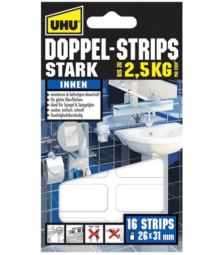 UHU - 45380 - Strisce biadesive, presa fino a 2.5 kg, 16 pezzi, 26 x 31 mm