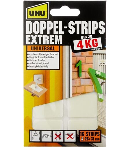 UHU - 45450 - Strisce biadesive, presa fino a 4 kg, 16 pezzi, 26 x 31 mm