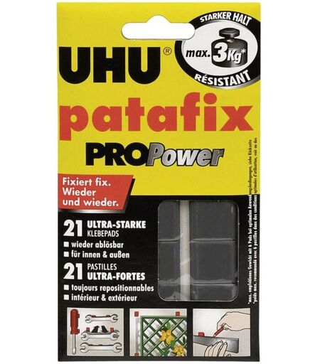 Dettagli tecnici Colore Bianco Patafix prop ower Elica UHU patafix ower - il pratico e ultra-potente aiuto durante i lavori domestici e ripara L'ultra-potente, ablosbaren e pad adesivi riutilizzabili, fissare e riparare oggetti in modo permanente fino a 3 kg (in caso di condizioni di utilizzo ottimale) su diversi. Innumerevoli possibilità di utilizzo in casa e durante i lavori domestici. Adatto all'uso in ambienti interni o esterni, in quanto resistente ai raggi UV e all'umidità. Dermatologicamente testato. Testo tradotto automaticamente. Punti di forza e dettagli Fissare oggetti fino a 3 kg Rimovibile / utilizzabile Resistente ai raggi UV e all'umidità Incluso nella consegna 1 confezione elica UHU patafix ower (21 pezzi). Requisiti di sistema null ...