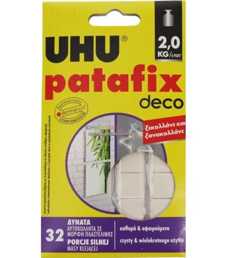 Massa adesiva/collante Patafix Homdeco, bianca, dermatologicamente testata, sostituisce spilli, chiodi o nastro adesivo, sostiene oggetti fino a 2 kg, 32 porzioni, Istruzioni per l'uso: le superfici devono essere pulite e asciutte. Strappare una porzione della massa e impastare fino a renderla morbida. Applicare UHU Patafix all'oggetto da attaccare e fissarlo premendo con decisione sulla superficie scelta. U40015 ...