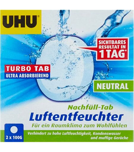 UHU Air Max ambiente - Ricarica assorbente dell'umidità molto rapida ed efficace, bianco, 2 ricariche tab da 100g molto potenti incluse