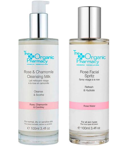 Il Duo detergente per pelli sensibili di The Organic Pharmacy contiene: 1 x Latte detergente alla rosa e camomilla The Organic Pharmacy, 100 ml1 x Spritz viso alla rosa The Organic Pharmacy, 100 ml Latte detergente alla rosa e camomilla di The Organic Pharmacy: il latte detergente alla rosa e camomilla di The Organic Pharmacy è un latte detergente delicato che rimuove senza fatica il trucco (anche quello waterproof degli occhi!) e le impurità, rafforza i capillari fragili e nutre la pelle con un estratto lenitivo di camomilla e rosa. Il latte detergente delicato rimuove il trucco e le impurità, rafforza i capillari fragili e nutre la pelle con estratti lenitivi di aloe e camomilla. The Organic Pharmacy Rose Facial Spritz: uno spray idratante per il viso a base di idrolato di rosa ad alto contenuto di nutrienti e vitamine per una pelle perfettamente idratata e bella. ...
