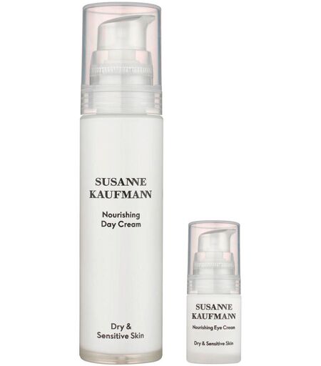 Il set per la cura del viso Susanne Kaufmann Line T comprende: 1 x Susanne Kaufmann Day Cream Line T, 50 ml 1 x Susanne Kaufmann Eye Cream Line T, 15 ml Susanne Kaufmann Day Cream Line T: La Day Cream Line T è la cura idratante e lenitiva ideale per la pelle secca e sensibile. Come tutti i prodotti della linea T, contiene un complesso di erbe finemente bilanciato di camomilla, salvia, malva e fiori di iperico. Queste essenze vegetali sono note per il loro effetto rilassante, calmante e rigenerante. L'alta percentuale di ingredienti attivi crea una cura leggera ma nutriente. Il migliore olio di semi di rosa canina serve da vettore. Questo olio ricco di energia viene assorbito con gratitudine dalla pelle, leviga, vitalizza e contrasta la formazione delle rughe. Il suo effetto vitaminico e lenitivo si nota immediatamente. La crema fornisce una base ideale per il trucco. Applicazione: Applicare al mattino dopo la pulizia e massaggiare delicatamente. Susanne Kaufmann Eye Cream Line T: La Eye Cream Line T fornisce generosamente la pelle fine e sottile della zona sensibile degli occhi con olio di enotera. Questo prezioso prodotto di bellezza naturale nutre, idrata e previene le rughe d'espressione. Come tutti i prodotti della linea T, la crema per gli occhi contiene un complesso di erbe finemente sintonizzato di camomilla, salvia, malva e fiori di iperico. Queste essenze vegetali sono note per il loro effetto rilassante, calmante e rigenerante. La crema non contiene sostanze striscianti e può essere applicata su tutto il contorno occhi. Applicazione: La ricca crema deve essere applicata al mattino e alla sera. Massaggiare delicatamente l'arco zigomatico e la palpebra superiore. Applicare più spesso una volta alla settimana e usare come maschera per gli occhi. Può anche essere applicato alle rughe di espressione e alle rughe periorali intorno alla zona delle labbra - per la prevenzione. Linea di cura del viso T La linea T è per la pelle secca e sensibile. Contiene ingredienti idratanti e uno speciale complesso di erbe dal forte effetto rigenerante, composto da fiori di camomilla, salvia, foglie di achillea, fiori di iperico e olio di semi di rosa canina. La linea di cosmetici porta il suo nome: Susanne Kaufmann. E così è sinonimo di un messaggio personale e di una convinzione che si sente in ogni prodotto. I suoi prodotti mostrano la fede nel potere della natura, una marcata consapevolezza della qualità e un chiaro impegno per la sostenibilità. La confezione minimalista in vetro o plastica riciclata non solo contiene preziosi cosmetici attivi naturali dal mondo vegetale del Bregenzerwald, ma dimostra anche la convinzione di Susanne Kaufmann della sostenibilità e della naturalità. Questo si riflette anche nella fabbricazione dei prodotti. ...