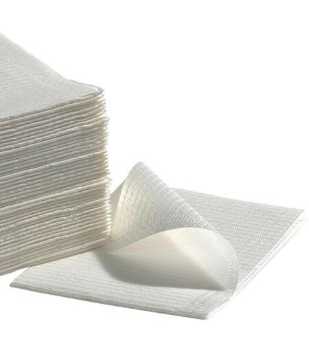 Materiale di pura cellulosa a 2 strati con parte inferiore impermeabile come terzo strato per una protezione sicura contro gli spruzzi e l'insudiciamento dei vestiti. Altamente assorbente. Dimensioni: 48 x 33 cm. 500 pezzi per confezione. ...