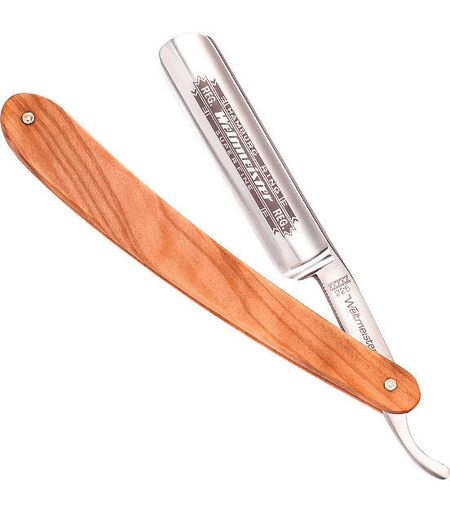 Una lama fissa in classico acciaio da rasoio. Terra cava. Scaglie del manico in legno pregiato o corno di bufalo. ...