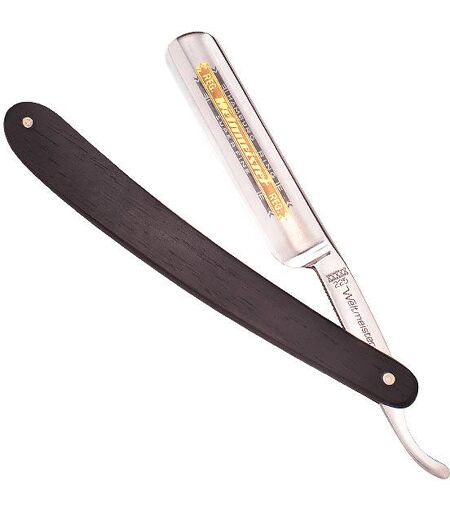 Una lama fissa in classico acciaio da rasoio. Terra cava. Scaglie del manico in legno pregiato o corno di bufalo. ...