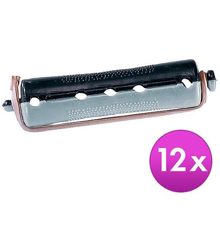 Bigodini corti a onda permanente, bicolore, con linguette rotonde in gomma. Gli spazi vuoti in questi rulli perm assicurano una distribuzione uniforme del liquido perming. Utilizzando le linguette rotonde di gomma, i capelli possono essere trattati con particolare delicatezza. in 7 misure, ognuna in un colore diversolunghezza dell'avvolgitore circa 7,5 cm, superficie dell'avvolgitore circa 3,5 cm12 pezzi per confezione ...