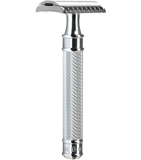 La testa del rasoio - lama classica - pettine aperto. Solo il rasoio diritto è ancora più tradizionale: il rasoio diritto MÜHLE con un pettine a denti aperti richiede chiaramente un tocco sicuro. I denti relativamente larghi e il posizionamento piatto della lama producono una rasatura estremamente diretta e offensiva - i peli della barba più ispidi e lunghi sono quindi più facili da afferrare e tagliare. Per rasoi avanzati e professionali che sanno esattamente cosa stanno facendo nel loro rituale quotidiano di toelettatura. Il materiale - cromo Senza cromo, il mondo perderebbe molto del suo splendore. Nella lavorazione per i nostri accessori per la rasatura umida, dimostra le sue migliori qualità: La superficie è resistente alla corrosione, particolarmente durevole e ha una lucentezza preziosa e seducente. Al contrario, i colori e le forme di altri materiali di alta qualità sono messi in risalto al meglio. Peso: 90 gLarghezza: 42 mmLunghezza: 106 mm TRADIZIONALE Per gli esperti e per coloro che vogliono diventare esperti: Una porzione extra di destrezza è necessaria per una rasatura bagnata con un rasoio della serie TRADITIONAL. Ma con un po' di pratica, il rituale del mattino diventa presto un piacere indispensabile - proprio perché richiede un po' di tempo libero. MÜHLE produce il classico accessorio da barba con lame intercambiabili in due versioni: Il piano con pettine aperto permette una tecnica di rasatura molto diretta per gli esperti con le più alte esigenze. La rasatura con un pettine chiuso è più dolce, ma altrettanto precisa e completa nei suoi risultati. Il più bello di tutti i rituali di toelettatura include naturalmente il pennello da barba abbinato. Classicamente in metallo cromato, opzionalmente anche in nero, o un po' più esclusivo con una lega di oro rosso. ...