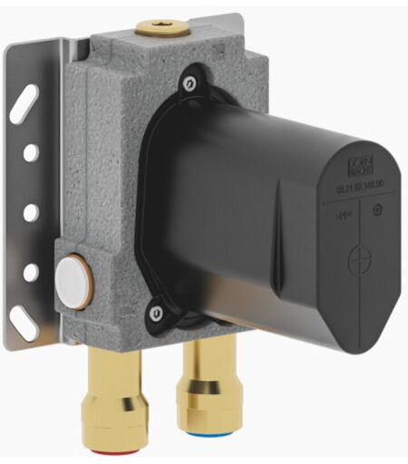 kit pre-assemblaggio 2x dispositivo antiriflusso Corpo UP, privo di piombo, resistente alla dezincatura 3x uscita G 1/2". 2x ingresso G 1/2". 2x pre-separazione kit di montaggio Cappuccio di protezione del guscio Manicotto di protezione dall'acqua Isolamento acustico e termico Presa per l'interruttore automatico di commutazione Profondità minima di montaggio 80 - 105 mm Dimensione punto 60 mm Combinabile solo con i kit di montaggio finale 36 120 SSS-FF o 36 020 SSS-FF. ...