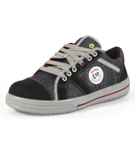 Secondo la norma iso 20345 S2 SRC/ESD/BGR 191, forma a Coperchio in acciaio ergonimique che protegge contro gli urti, suola interna L10 ESD Elten Sneakers Scarpe di sicurezza L10 sensazione Low ESD S2 72106 Materiale Tessuto impermeabilizzato al design jeans/nubuck impermeabilizzato, Fodera tessile Bioactive, linguetta imbottita, Punta in acciaio, Suola intera interna L10 ESD, prima in tessuto non tessuto morbido Compatibile ESD, suola TPU/PU L10, secondo EN ISO 20345 S2, forma a ...