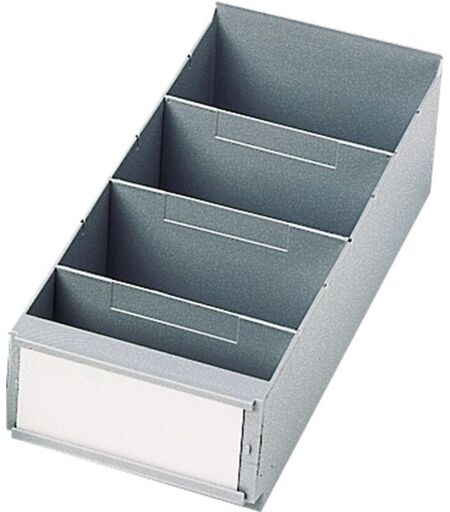 Colore grigio · per contenitori da scaffale · in polistirolo altamente resistente agli urti · suddivisibile in massimo 5/7/9 parti a seconda della lunghezza del contenitore · nessun spostamento del materiale immagazzinato grazie alle pareti che si incastrano nelle apposite scanalature · confezione da 25 pezzi ...