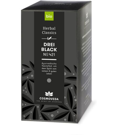 Miscela di tè ayurvedica di tre tipi di tea tree - per il "tè nero". Tea tree (Camellia sinensis) conosciuto anche come albero del tè e olio di Melaleuca proviene dall'India. Cresce fino a 16 metri di altezza, ma viene coltivato come un arbusto basso già da molti anni. Le foglie della pianta vengono utilizzate per il tè. Se diventeranno tè verde, bianco, nero, oolong o pu-erh dipende dalla loro lavorazione. Miscela di tre tipi di tè nero: Ruanda Rukeri - tè nero coltivato nella valle di Rukeri in Ruanda, in un ambiente soleggiato e fresco ad un'altitudine di 1600 metri. Dooars Putharjhora - tè nero coltivato nel giardino del tè Putharjhora nella regione di Dooras in India. Darjeeling Ambootia - tè nero coltivato nel giardino del tè Abootia nella regione di Darjeeling nel Bengala occidentale (India). I tè BIO del marchio Cosmoveda sono vegani, senza lattosio e glutine. Le erbe vengono tritate grossolanamente, senza additivi aromatici e confezionate in confezioni naturali (bustina di amido di mais, senza spago e slip). La massima qualità è garantita dalla produzione biologica e dal commercio equo e solidale (Fair Trade). Per una cucina e dieta ayurvedica equilibrata. ...