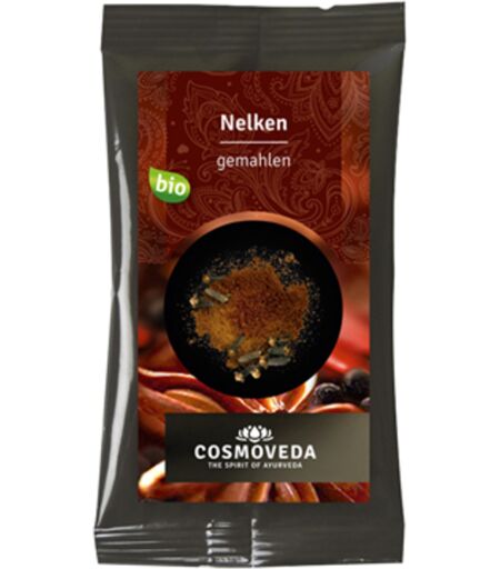 Chiodi di garofano BIO – chiodini macinati di alta qualità. I chiodi di garofano sono boccioli di fiori essiccati di un albero aromatico chiamato chiodi di garofano ( Syzygium aromaticum). Il garofano è un albero sempreverde che prospera principalmente nei luoghi costieri o tropicali e proviene dalle isole Maluku, conosciute come le "isole delle spezie". I chiodi di garofano si ottengono da gemme rosa, che diventano marroni dopo tre giorni di essiccazione. Il nome del "raggio" casuale è stato dato a causa della forma che ricorda le unghie. I chiodi di garofano sono popolari nelle tradizioni cinese e ayurvedica, dove vengono considerati una delle spezie più utili con un aroma caratteristico. Spezia aromatica che non dovrebbe mancare in nessuna casa. I chiodi di garofano BIO, o chiodi di garofano in polvere, hanno un sapore caratteristico, leggermente piccante ed estremamente aromatico, che li rende ottimi per molte pietanze – potete utilizzarli durante la preparazione di dolci, salse, vari tipi di carne… durante l'inverno sono considerati una spezia indispensabile nei dolci delle feste, biscotti e vin brulé. Le spezie di Cosmoveda vengono confezionate in confezioni subito dopo la lavorazione, che preservano la freschezza e la pienezza dell'aroma naturale. ...