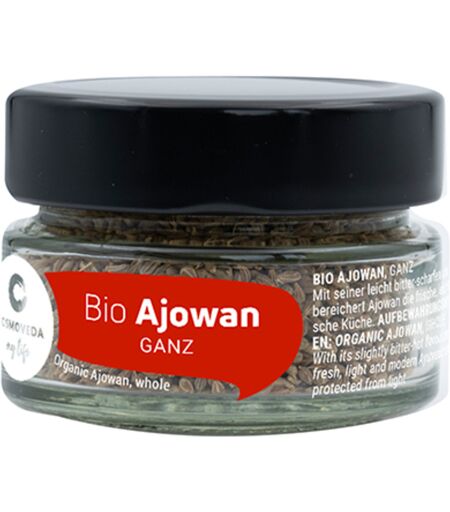 Spezia ayurvedica per un gusto e un'armonia meravigliosi . Le spezie sono il cuore della cucina ayurvedica . Conferiscono alle pietanze un gusto gradevole e allo stesso tempo forniscono una sensazione particolarmente piacevole a fine pasto. Usando questo prodotto, possiamo ottenere un equilibrio dei sei sapori e un equilibrio dei dosha. Ajowan sa di timo. Schiacciato o macinato viene aggiunto ai piatti indiani o al curry. La spezia, che in India di solito viene prima fritta prima di usarla, è spesso combinata con lo zenzero e l'assafetida. Si abbina bene a patate, pane, dolci, legumi. Massima qualità del prodotto: Da produzione biologica Confezione che preserva la freschezza e la pienezza dell'aroma naturale Senza glutine Senza lattosio Vegano Fresco (sotto i 40°C) Dal commercio equo (Fair Trade) ...
