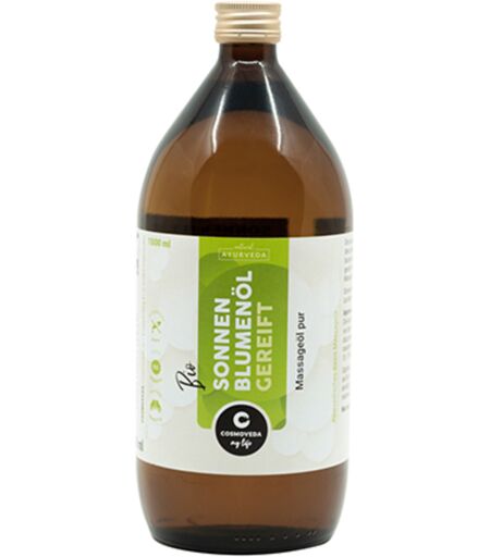 Olio di girasole - per il massaggio tradizionale ayurvedico. Il girasole comune o semplicemente girasole (Helianthus Annuus) proviene dall'America. Ha grandi fiori gialli che assomigliano al sole. Oggi la vediamo come una pianta ornamentale nei giardini domestici, ma è popolare soprattutto tra gli agricoltori in quanto ha semi commestibili. L'olio viene prodotto dai semi di girasole, che viene comunemente usato in cucina e cosmetici. L'olio di girasole del marchio Cosmoveda è utile per il massaggio del corpo. È maturato secondo metodi tradizionali e quindi molto adatto al massaggio ayurvedico, che viene eseguito da millenni. Il massaggio con l'olio di girasole può essere eseguito a casa! Secondo la tradizione ayurvedica, il massaggio viene eseguito prima della doccia o del bagno: Per un'esperienza più piacevole, scaldare leggermente l'olio prima di iniziare il massaggio. Poi massaggiare tutte le parti del corpo, per un totale di circa 10-15 minuti. Prima di risciacquare, lasciare l'olio sulla pelle per un breve periodo in modo che il corpo possa assorbirlo. Infine, concediti una doccia veloce o un bagno rilassante. L'olio è adatto anche per altri tipi di massaggi. ...