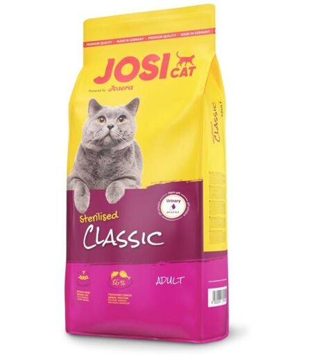 Josera JosiCat Classic gatti sterilizzati 18kg Pasto squisito con ingredienti selezionati Contenuto di grassi moderato per gatti da appartamento e sterilizzati Mantiene il pH dell'urina a 6,0-6,5 e quindi può aiutare a prevenire la formazione di calcoli urinari Grazie alle fibre alimentari speciali, aumenta il senso di sazietà del gatto Senza coloranti, aromi e conservanti artificiali aggiunti Senza zucchero, soia e latticini JosiCat Sterilised Classic offre al tuo gatto sterilizzato un menu raffinato: il cibo è studiato su misura per le sue mutevoli esigenze nutrizionali. A basso contenuto di grassi e ad alto contenuto proteico stimolano il metabolismo del tuo gatto e aiutano a mantenere un peso sano. Inoltre, un contenuto più elevato di fibre grezze favorisce una sensazione di sazietà. Un'attenta selezione di minerali aiuta a mantenere il pH delle urine a 6,0-6,5, il che può prevenire la formazione di calcoli urinari. Alimento completo per gatti adulti Ingredienti: Mais integrale, ...