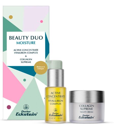 Duo idratante per una pelle più soda e levigata: più fresca al mattino, più rigenerata la sera. Questo set contiene: Concentrato attivo Hyaluron Complex 30 mlCollagene Supremo 50 ml Applicazione: Concentrato attivo di complesso di ialuroni: applicare su viso, collo e décolleté e lasciare assorbire o massaggiare con delicati movimenti circolari. Applicare il gel prima della cura abituale del giorno o del dopo. Può essere utilizzato anche localmente, ad esempio se si desidera fornire alle zone secche della pelle un trattamento più intensivo.Collagene Supremo: applicare uniformemente sulla pelle pulita e tonificata e massaggiare delicatamente. Lasciare assorbire bene. Evitare il contorno occhi. ...