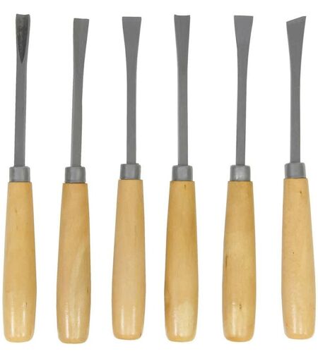 Set di sgorbie in acciaio, 6 pezzi, per incisioni e lavori di falegnameria. ...