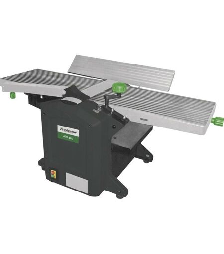 Lavatrice a spessore ADH 305 - Tavolo di lavoro in alluminio fuso fresato - Ideale per l'uso mobile grazie al design piccolo e compatto - Avanzamento automatico dei pezzi - Per la giunzione angolare (90°) e la lavorazione piana di tavole in legno massiccio. tavole. Tavole e modanature - I rulli gommati in entrata e in uscita proteggono la superficie del legno durante la piallatura a spessore - Guida di piallatura in alluminio inclinabile in modo continuo da 0° a 45° In dotazione: con 2 coltelli per piallare a strisce HSS. ...