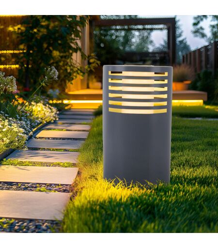 Descrizione Questa moderna lampada solare in metallo con paralume in plastica bianca si posiziona semplicemente nella posizione desiderata. La batteria ricaricabile integrata viene caricata dal pannello solare utilizzando la luce del sole e permette alla lampada plug-in di brillare con una luce bianca calda per circa 6 ore dal crepuscolo. Utilizzate questa luce per creare bellissimi accenti all'aperto o per creare un percorso illuminato in giardino o lungo il patio. La sorgente luminosa a LED è installata in modo permanente nella lampada. Dettagli della luce - Tipo di lampada: luce solare• Materiale: metallo, plastica• Colore: antracite• Durata della luce: circa 6 ore• Batteria inclusa: 1,2V AA 300mAh Ni-MH• Interruttore• Diametro x altezza in cm: 20x35 • Sorgente luminosa: LED• Sorgente luminosa installata in modo permanente• Colore della luce: bianco caldo ...