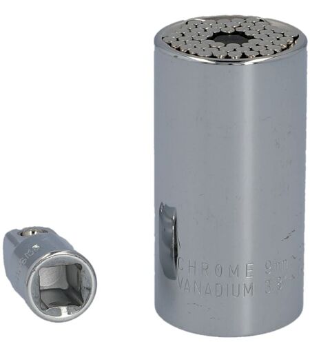 La bussola universale consente di risparmiare una fastidiosa e dispendiosa sostituzione delle chiavi. Anche le viti fissate o usurate possono essere rimosse in pochi secondi. La bussola è versatile e si adatta facilmente a viti, ganci, occhielli. Dettagli: propulsione: oltre 12,7 mm (1/2), materiale: cromo vanadio, portata fino a 300 Nm con adattatore da 3/8 a 1/2. ...